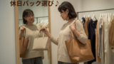 トップスやボトムスがカジュアルでも、靴やバッグをきれいめにするだけで通勤スタイルとして成立します。スニーカーよりローファー、トートよりレザーバッグを選ぶだけで印象が変わります。